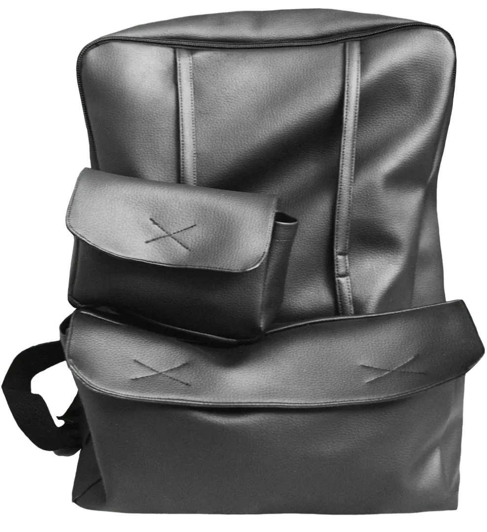 This modular backpack is designed with interchangeable components that can be added or removed according to transport needs. The modules are attached using straps that fasten at the bottom, allowing for flexible and functional configuration